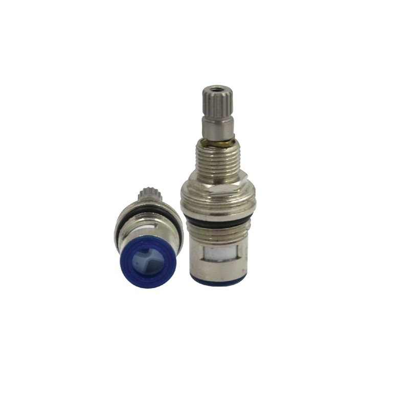 The ceramic disc cartridge is the heart of the faucet, controlling its temperature and water flow. Internally, two opposing discs made out of ceramic carbide rotate to control the flow of water. Because ceramic carbide is impervious to friction, it can last for many years before needing replacement.